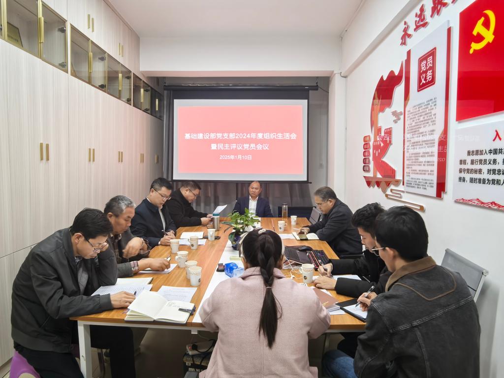 2025年1月10日下午,基础建设部党支部全体党员在bevictor伟德官网行政楼五楼515会议室召开2024年度组织生活会,邓逢光副校长以普通党员身份参加,会议由党支部书记杨春杰主持。机关纪委委员、审计工作部部长陈成到会点评。