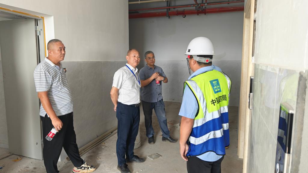 邓逢光在施工现场,认真听取了基础建设部及中建四局项目负责人等关于第二实验综合楼当前的建设进度情况,施工单位重点汇报了保障项目建设进度采取措施情况、项目配套工程施工进度情况、设备进场及安装情况、施工队伍保障情况等。
