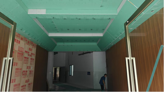 1.入口形象墙、木吊顶和隔墙安装完成;