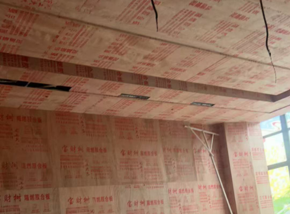 4.天花吊顶,墙面阻燃板打底完成98%。